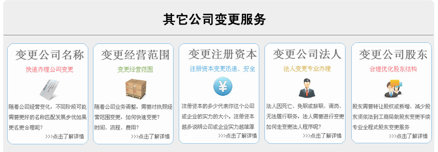 變更公司名稱 變更公司股東(股權) 變更公司法人 變更公司地址 變更公司經營范圍 變更公司注冊資本